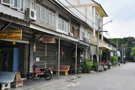 ก6. ย่านการค้าเก่าตลาดท่าเรือ ที่ตั้ง: ตำบลท่าเรือ อำเภอท่ามะกา จังหวัดกาญจนบุรีี ละติจูด 13° 57' 24.24" เหนือ ลองจิจูด 99° 44' 54.69" ตะวันออก ประวัติโดยสังเขป ย่านการค้าเก่าตลาดท่าเรือตั้งอยู่ริมแม่น้ำแม่กลอง เดิมชาวบ้านเรียกว่า ตลาดล่าง ซึ่งเป็นท่าเรือจ้าง รอบๆ ท่าเรือมีการค้าขายริมน้ำอย่างคึกคัก ต่อมามีการสร้างศาลเจ้าแม่ทับทิม โรงเจ ตลาด และเรือนแถวไม้สองชั้นขึ้นในพื้นที่ ส่งผลให้การค้าขายมีความเจริญรุ่งเรืองขึ้นเป็นลำดับ และกลายเป็นย่านการค้าที่สำคัญของพื้นที่ในระยะเวลาต่อมา หลังจากการพัฒนาถนนแสงชูโต ทำให้การเดินทางและขนส่งสินค้าทางแม่น้ำแม่กลองลดบทบาทลง รวมทั้งมีการสร้างตึกแถวค้าขายริมถนนแสงชูโต มากขึ้น ส่งผลให้การค้าขาย ของตลาดท่าเรือค่อยๆ ซบเซาตามไปด้วย อย่างไรก็ตามในปัจจุบันยังคงสามารถพบเห็นการค้าขายแบบดั้งเดิมในพื้นที่ได้ เช่น ร้านอัตต์สินทองเภสัช ย่านการค้าเก่าตลาดท่าเรือถือเป็นตัวอย่างของชุมชนที่อยู่อาศัยดั้งเดิมของจังหวัดกาญจนบุรีที่มีการเปลี่ยนแปลงวิถีชีวิตของผู้อยู่อาศัย จากทางน้ำสู่ทางบก และเป็นชุมชนสำหรับการเรียนรู้ในด้านประวัติศาสตร์ สถาปัตยกรรม และผังเมืองในสมัยก่อนได้เป็นอย่างดี
